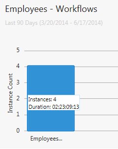 This report shows the number of instances for your workflow. Hover over the report to see the duration for all the instances. The report includes running and completed instances of the workflow.