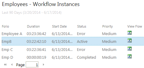 - Click the View Flow icon of the Workflow Instance to open graphical representation of the instance.