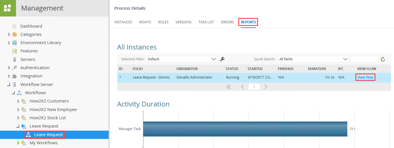 - Any workflow instances created with an older version of K2 show in the legacy View Flow report