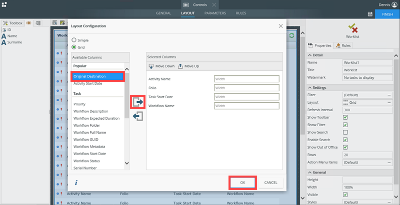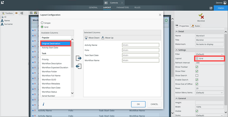 Follow the steps below to configure Out of Office on the Worklist control at runtime: