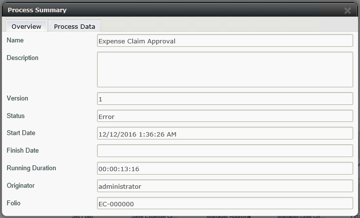 - Process Data displays workflow Data Field details. Columns can be re-sized by dragging the column lines. A View link displays if the value of a Data Field or XML Field has changed. Clicking the link or hovering over the item displays the changes.