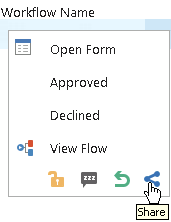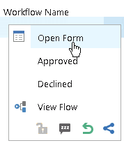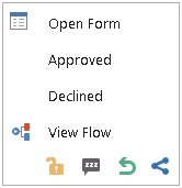 - Click an appropriate action to complete the task. In the example below, the available completion actions for this task are Approved or Declined. (The Actions shown will depend on the workflow design and whether the Actions were configured to be available without having to open the associated task form for the task).