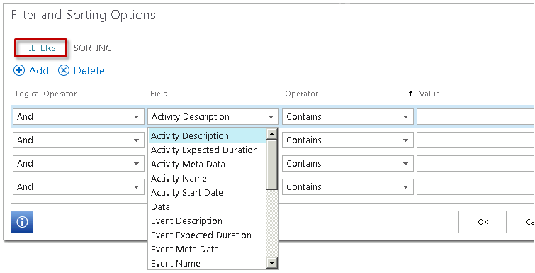 Although the default filter and sorting options work well for most applications, you have the ability to customize those options to best fit your specific business application.