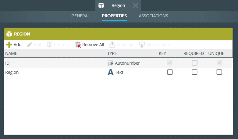 - Create an Item view called Region and drag a Drop-Down List control onto the canvas.
