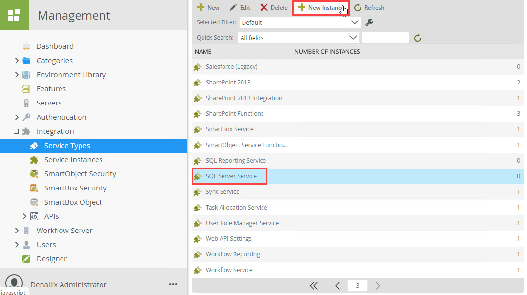 - Select SQL Server Service, then click the New Instance button in the toolbar.