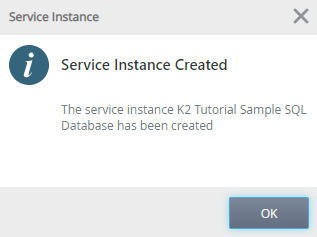 - Select the K2 Tutorial Sample SQL Database SQL Server Service instance.