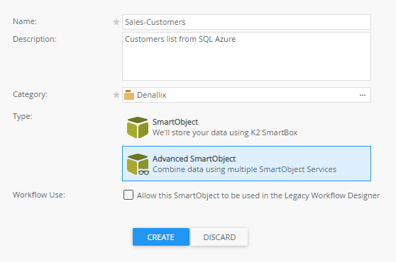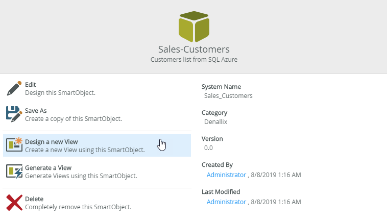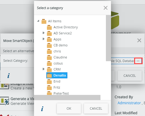 - Rename the generated SmartObject to Sales-Customer and move the SmartObject to the Denallix category.