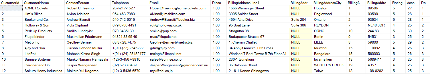 Table Name Table Customer Column Name Data Type Column Setting Columns CustomerId int (Autonumber) Primary key CustomerName nvarchar(50) ContactPerson nvarchar(50) Telephone nvarchar(50) Email nvarchar(50) DiscountRate decimal(4, 2) BillingAddressLine1 nvarchar(50) BillingAddressLine2 nvarchar(50) BillingAddressCity nvarchar(50) BillingAddressCountry int BillingAddressPostalCode nchar(10) Rating int AccountManager int DenallixRegion int - Create entries in the database. If you used the SQL script, entries already exist. Ensure you assign rights to your K2 Service Account.