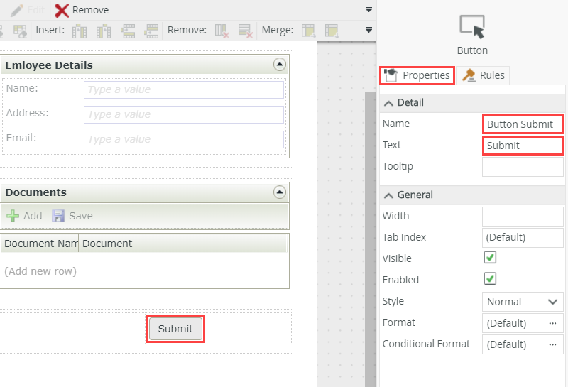Configure Rules for the Submit Button