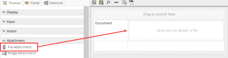 - From the Toolbox tab, drag and drop a File Attachment control to the second cell.