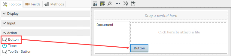 - Drag and drop a Button control from the Action section of the Toolbox to the bottom right cell.