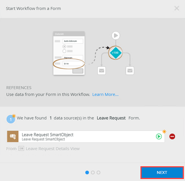 - The Start Workflow from a Form page shows. Click Next.