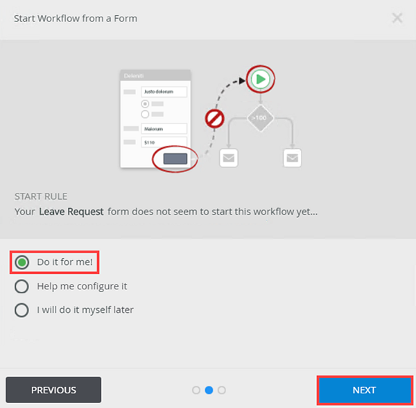 - In the Start Rule section, select the Do it for me! option and click Next.