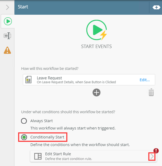 Create a workflow and configure the Conditional Start Rule