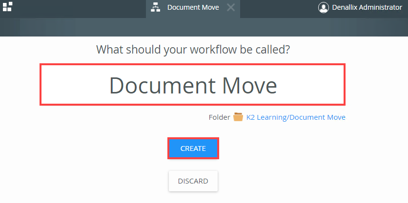 - Name this workflow Document Move and click Create.