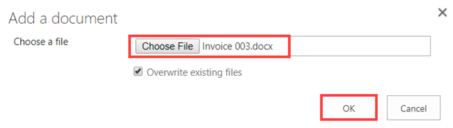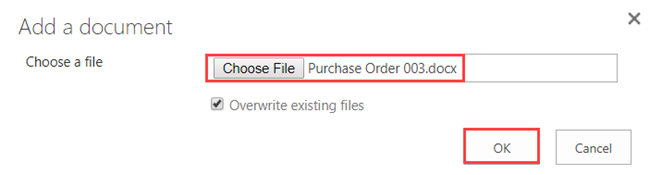 - Click Choose File, browse to the document and click OK.