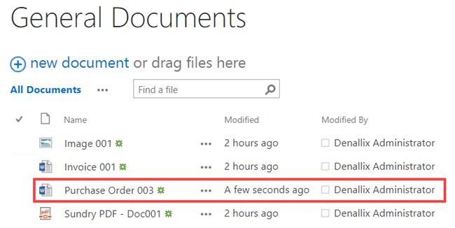 - The Invoice 003 document is added to the General Documents library.