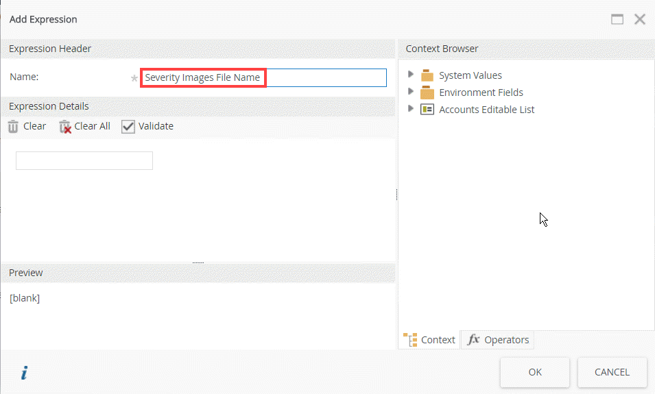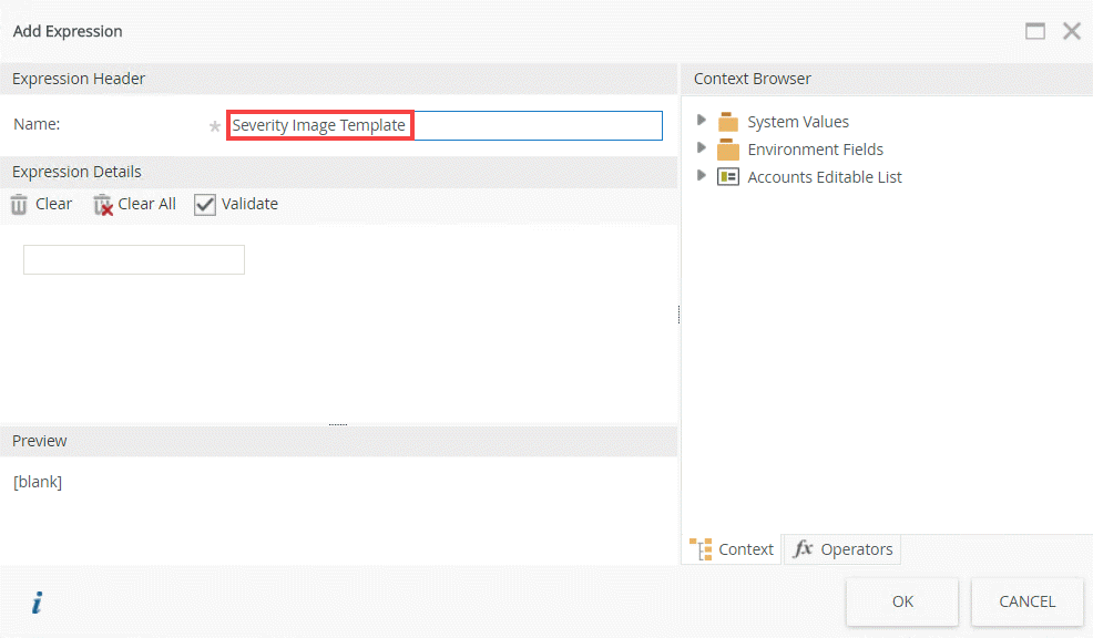 - Click Add and then enter Severity Images Add in the Name field.