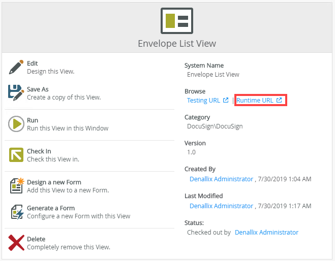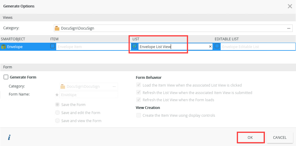 In this scenario, you begin by generating a list view from the DocuSign Envelope SmartObject.