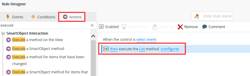 - Edit the View execute Initialize rule to disable the execute List method action.