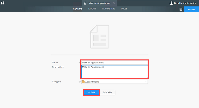 Specify Make an Appointment as the Name and Description and click the Create button.