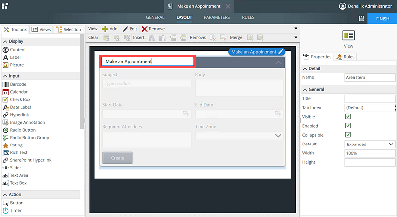 - Once activated, create the Make an Appointment view.