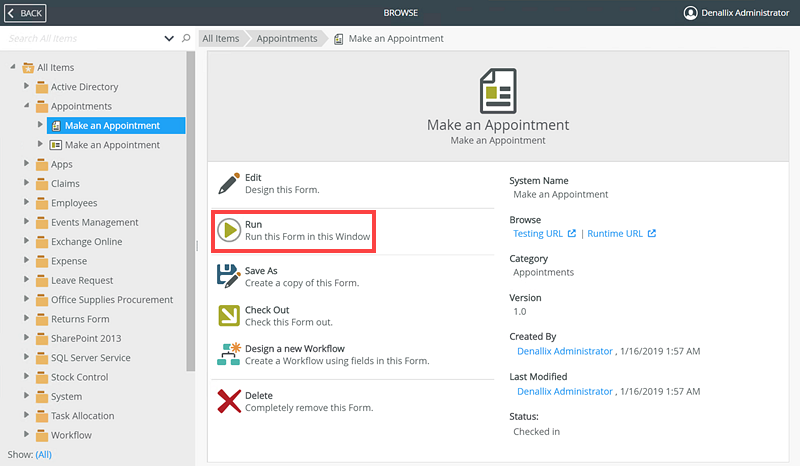 - Select Run from the Make an Appointment form.