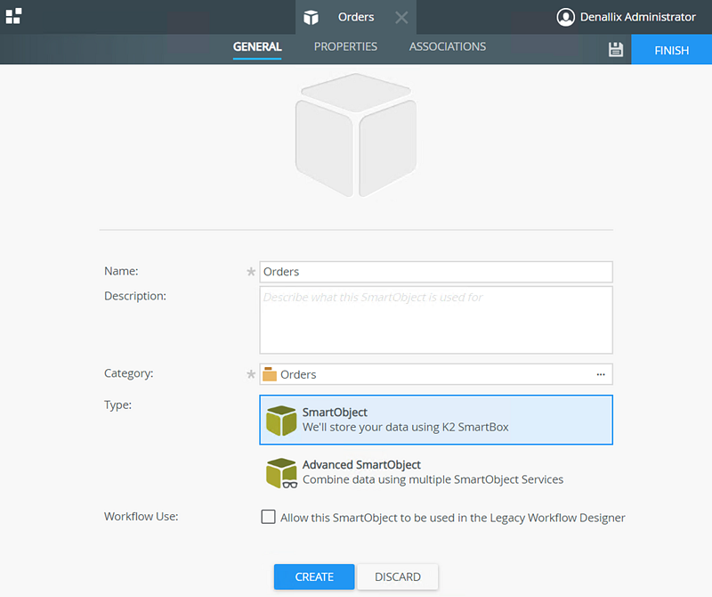 - In K2 Designer, create a new SmartObject. In this example it is named Orders