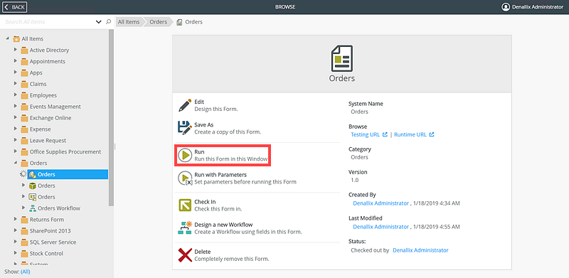 In the below steps you use the Task SmartObject and its create method to create a view, a form, and a workflow. These allow you to fill in information about an order and start a workflow which creates a task in Outlook.