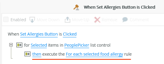 Example 1: Rule with a For each item in a List View condition and the Selected item state to remove multiple selected rows from a list.