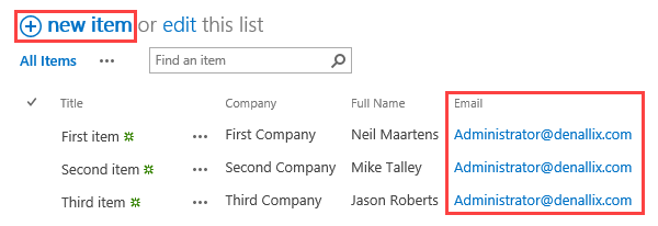 1. In SharePoint, create a custom List called Customers. Add at least one additional column called Email. (You can add other columns if you like.) Add at least three customers. For ease in testing, use the same email address for all customers. Create the Data and Workflow application elements. For the workflow start event, select Workflow is manually started.
