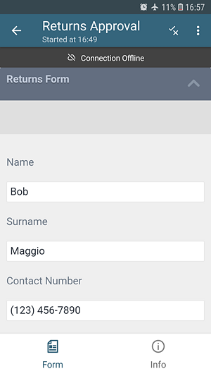 The Returns form is now able to be used in the K2 Workspace (Mobile) app while offline.