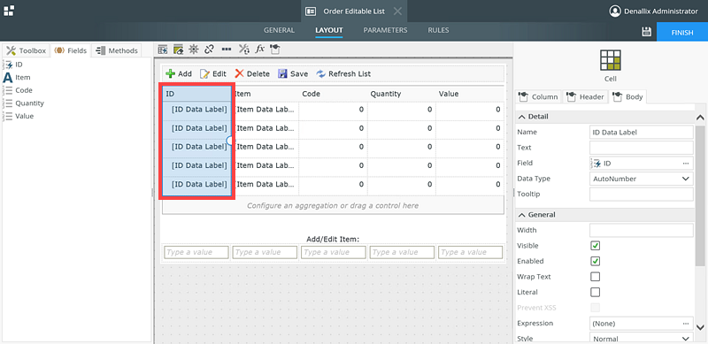 For example, suppose you have an order entry editable list. You want to define data validation so that each row in the order details must contain a value for the Item field. You also want to define validation so that at least one item is added to the editable list view.