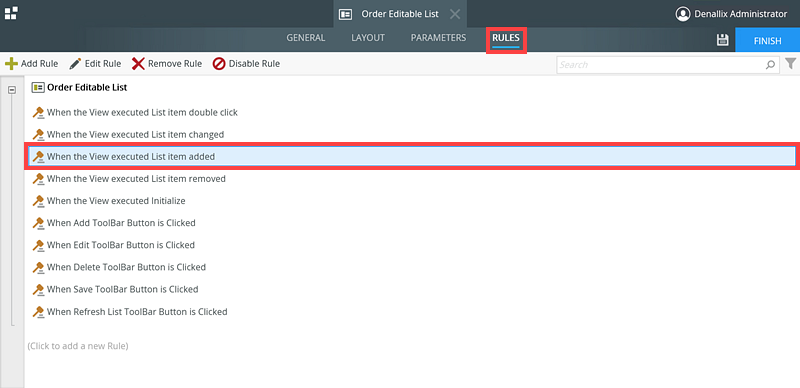- Select the Rules tab and edit the When the View executed List item added rule.