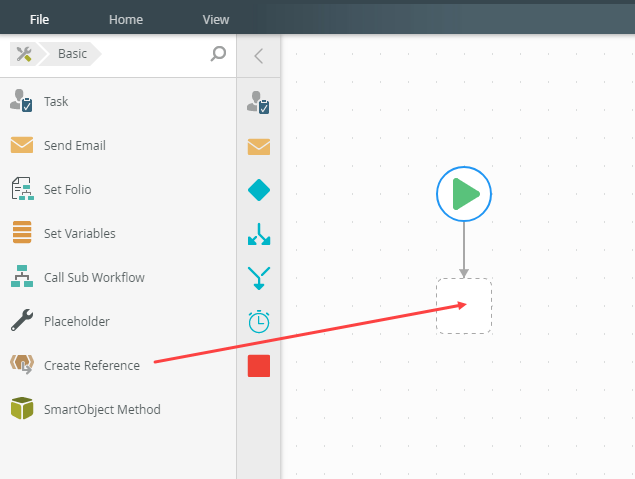 - Drag a Create Reference step from the basic steps onto the design canvas
