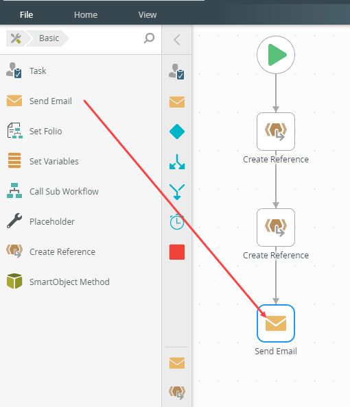 - You have configured this workflow with the K2 for SharePoint artifact reuse parameters. Add a Send Email step to complete the workflow.