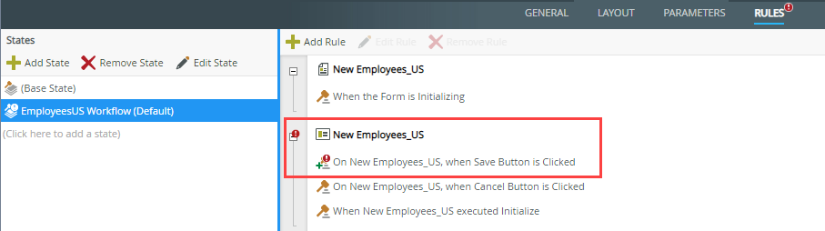 - Select New Employees_US > On New Emplyoees_US, when Save Button is Clicked