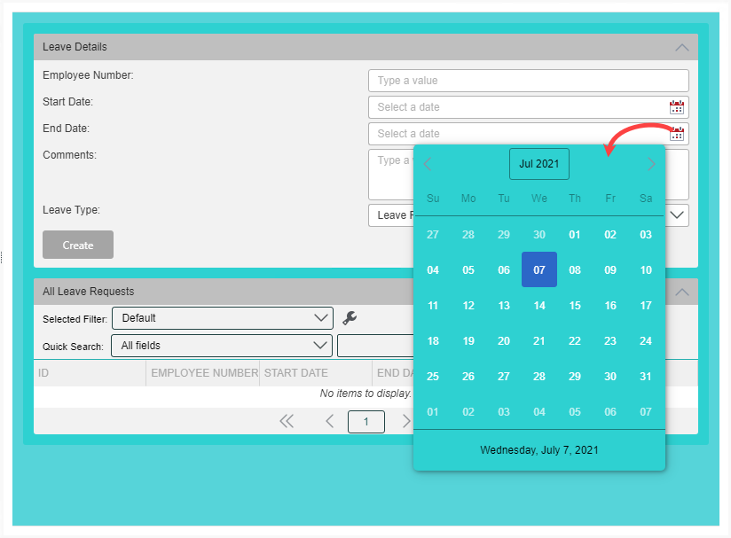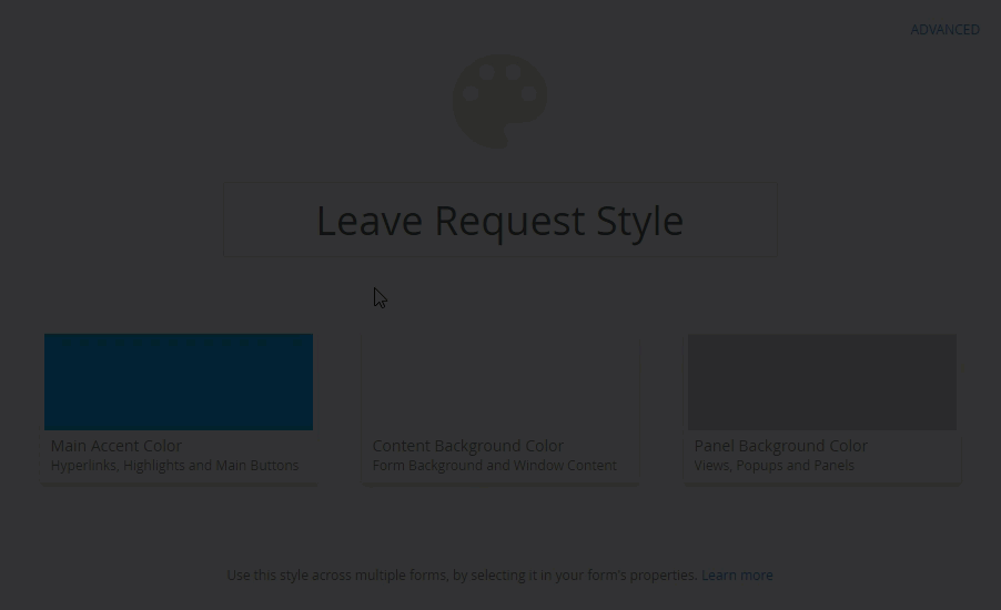 - From K2 Designer, select the Leave Request Form form and click Run. Note how the new style is applied to your form.