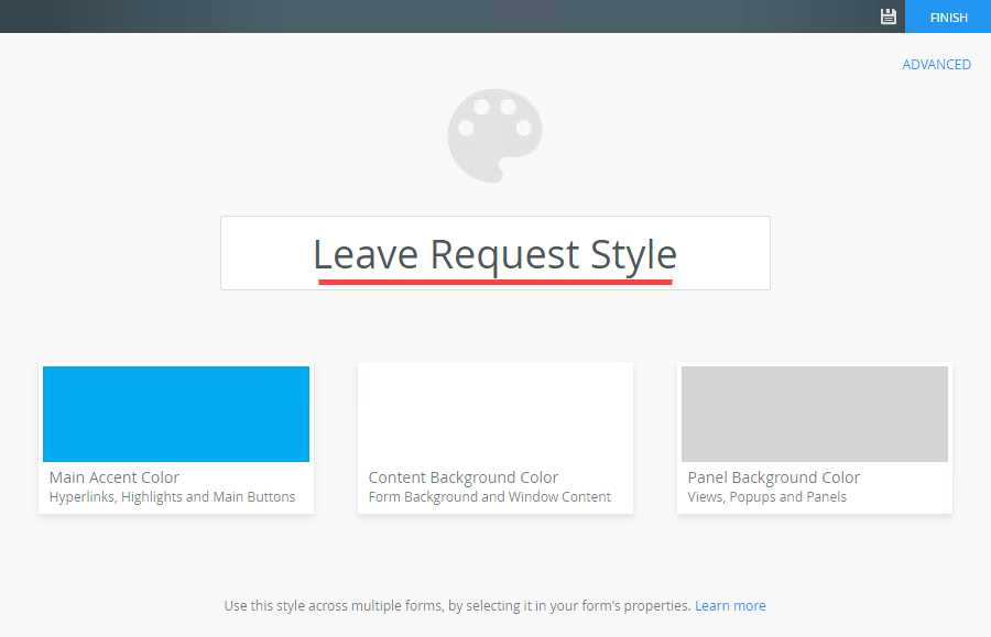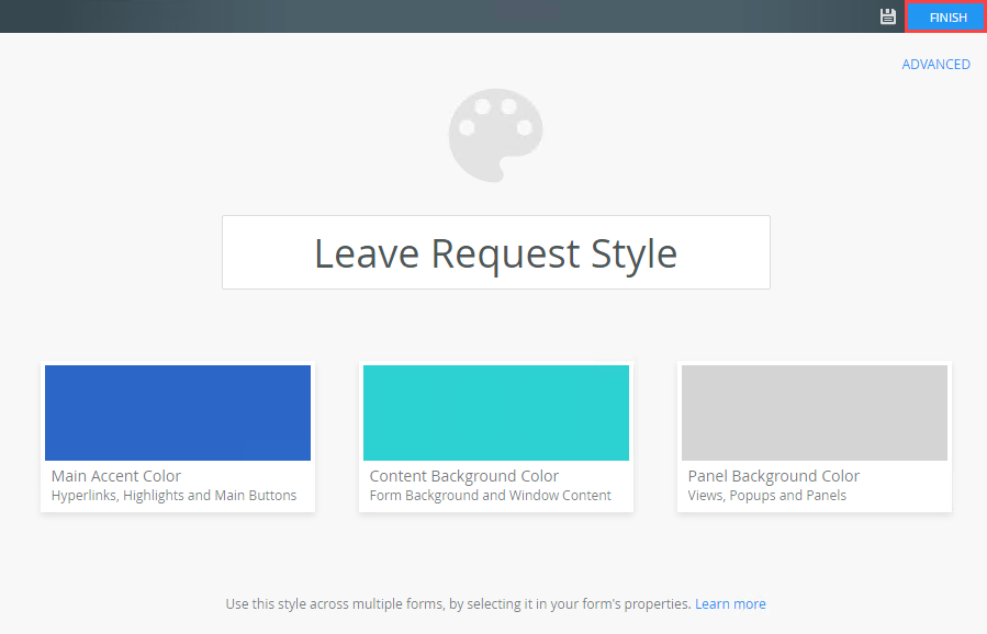 - Once you are done customizing your three main colors, click Finish to save the style profile.
