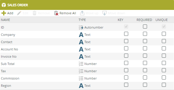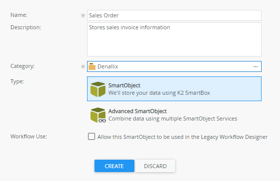 1. Create a Sales Order SmartObject to store your sales invoice content. If you are not familiar with creating a SmartBox SmartObject, see How To: Create A SmartBox SmartObject.