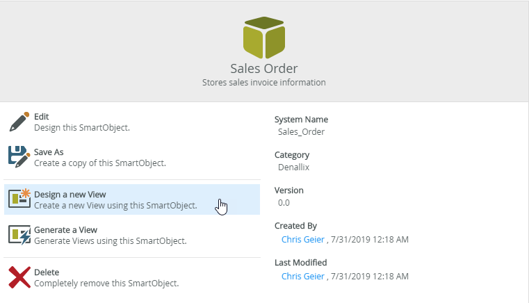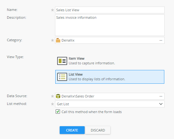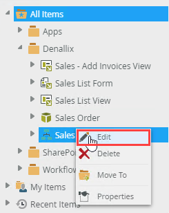 2. Create an editable list view for your Sales Order SmartObject. If you are not familiar with creating views, see How To: Create an Item View and a List View.