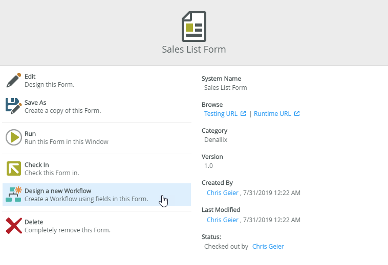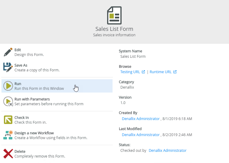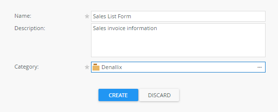 2. Specify Sales List Form as the Name, specify a Description, and select a Category.
