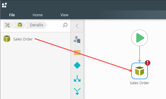2. Drag and drop the Sales Order SmartObject to the workflow step.