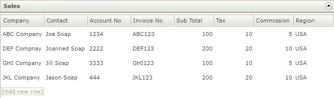8. Add content to your SmartObject using the Sales - Add Invoices View, using the example values from the following image: