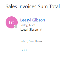3. Check your outlook inbox. The email shows the total sum of the invoice Sub Total and Tax values.