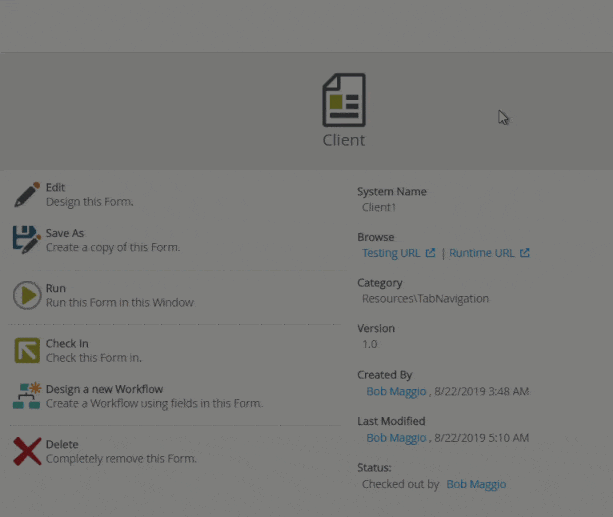 - The Client Item view loads.