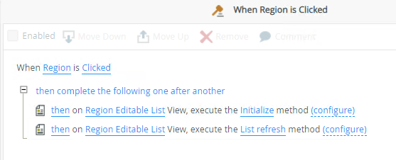 Enhanced rule configuration showing the Initializing event excluding the actions for the Region Editable List view