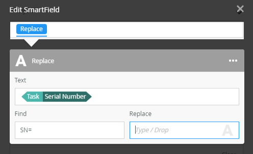- Drag Serial Number to the Replace Text field.