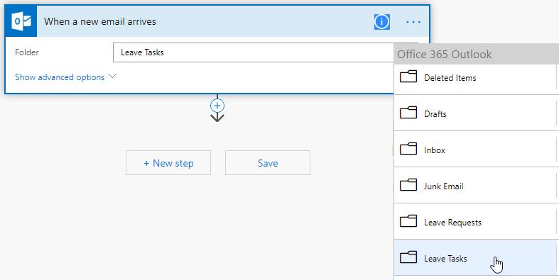 - Create a flow using the Outlook When a new email arrives action to redirect the Leave Approval Review workflow task.
