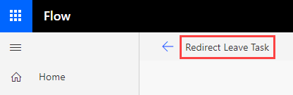 - Click on your flow name (top right side) and specify Redirect Leave Task as the name.